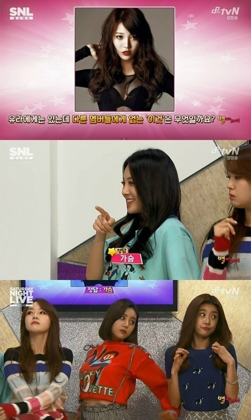 [스포츠서울] 'SNL 코리아'에 출연한 걸스데이 혜리가 유라의 가슴을 질투했다.