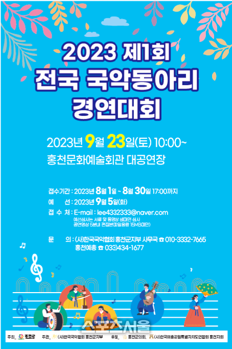 [스포츠서울ㅣ홍천=김기원 기자] 강원 홍천에서 제1회 전국 국악동아리 경연대회가 개최되는 가운데 오는 8월 한달간 전국 국악동아리 참여신청 접수를 받는다.