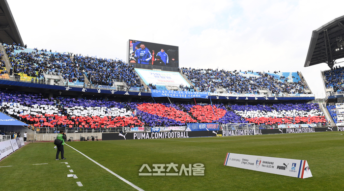 수원 삼성 응원단이 2일 수원월드컵경기장에서 열린 2023 하나원큐 K리그1 강원FC와 경기에 앞서 카드 섹션을 펼치고 있다. 2023. 12. 2. 수원 | 박진업기자 upandup@sportsseoul.com