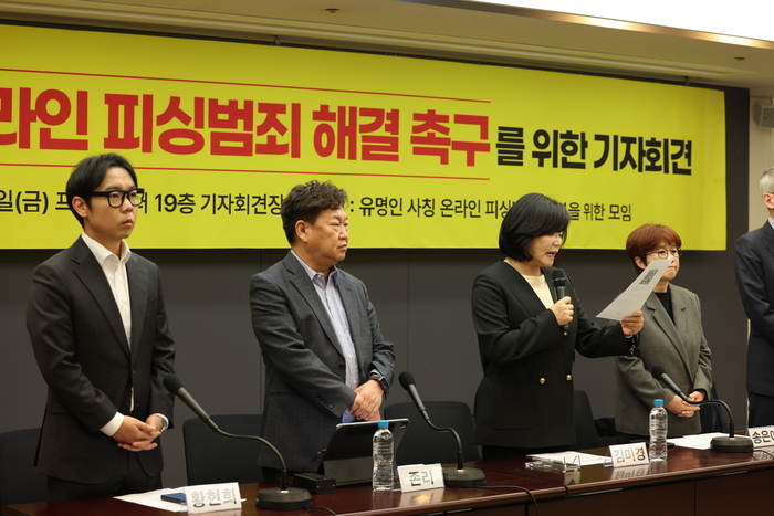 ‘유명인 사칭 온라인 피싱 범죄해결을 위한 모임(이하 유사모)’은 22일 서울 중구 한국프레스센터에서 공식 기자회견을 열었다. 유사모는 유명인을 사칭한 온라인 피싱 범죄의 심각성을 알리고, 플랫폼과 정부의 해결 노력을 촉구하는 성명을 발표했다.