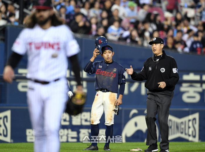 이때 황성빈은 타구를 한 번 본 후 전력으로 1루까지 달렸다. 이미 파울이 선언됐다. 황성빈은 1루를 지나 한참 더 나갔다. 가쁜 숨을 내쉬며 천천히 타석으로 돌아왔다. 이 과정에서 피치클락 위반 경고도 받았다.