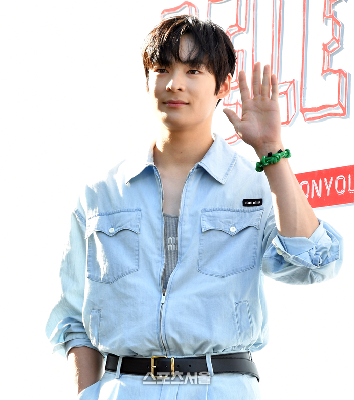 배우 송건희가 13일 청담동 미우미우 매장에서 열린 장원영 셀렉트 이벤트에 참석하기 앞서 포토월에 서고 있다. 2024.05.13.