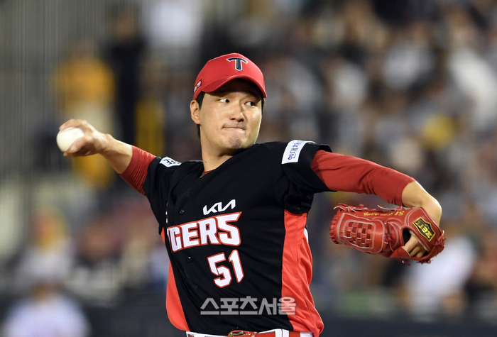 KIA 전상현이 10일 잠실구장에서 열린 2024 KBO리그 LG와 경기 9회말 등판해 힘차게 공을 던지고 있다. 2024. 7. 10.