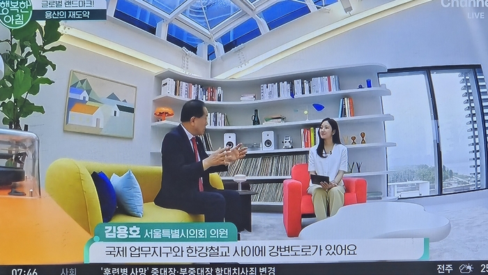 김용호 시의원은 오늘(16일) 오전 7시 30분 방송된 채널A ‘행복한아침’에 출연해 서울시 용산에서 새롭게 조성한 스카이 스위트 전망호텔, 노들예술섬, 국제업무지구 등 랜드마크를 소개했다.