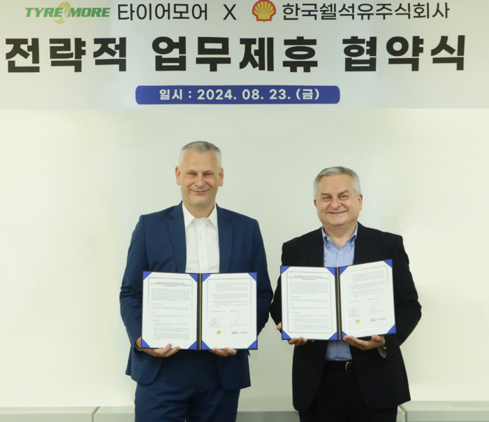 [스포츠서울 | 배우근 기자] ‘타이어모어’와 프리미엄 합성 엔진오일 제조사 ‘한국쉘석유 주식회사’가 전략적 업무협약(MOU)을 체결했다. 타이어모어는 미쉐린코리아(대표 제롬 뱅송)의 타이어 및 자동차 경정비 서비스 네트워크다. 전세계 약 7000개의 매장을 운영하며, 국내에서도 지난해 9월 문정 직영점 첫 런칭 후 빠르게 확장해 나가고 있다.
