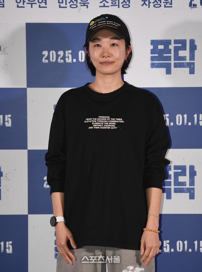 현해리 감독이 6일 CGV 용산아이파크몰에서 열린 영화 ‘폭락’ 언론시사회에서 포즈를 취하고 있다.