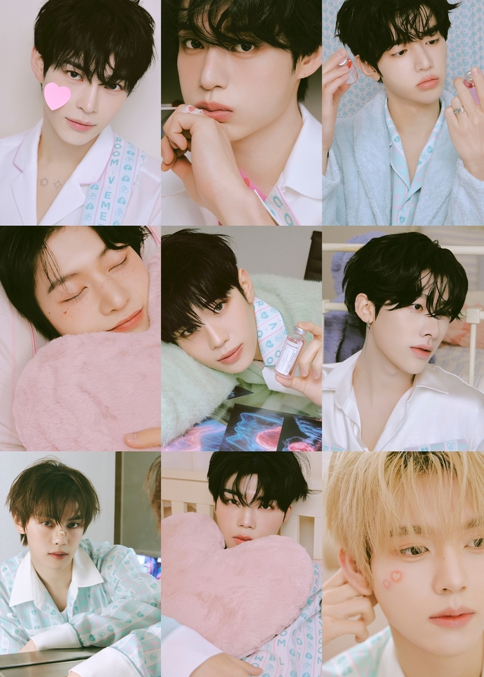 공개된 사진 속 ZEROBASEONE은 9인 9색 초현실 비주얼을 자랑하며, 보는 것만으로도 힐링을 선사하고 있다. 특히, 아홉 멤버는 마치 사랑에 중독된 모습이다. 핑크 톤의 오브제들과 함께, 사랑의 과정에서 겪게 되는 미스터리한 감정들을 그려낸 듯한 멤버들의 다양한 표정 연기가 인상적이다.