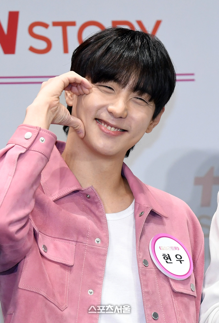 배우 현우가 4일 서울 구로구 라마다서울신도림호텔에서 진행된 tvN 스토리 ‘잘생긴 트롯’ 제작발표회에서 취재진을 향해 포즈를 취하고 있다.