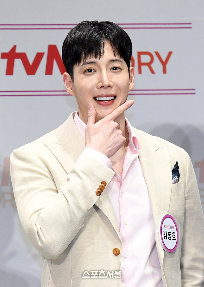 배우 김동호가 4일 서울 구로구 라마다서울신도림호텔에서 진행된 tvN 스토리 ‘잘생긴 트롯’ 제작발표회에서 취재진을 향해 포즈를 취하고 있다.