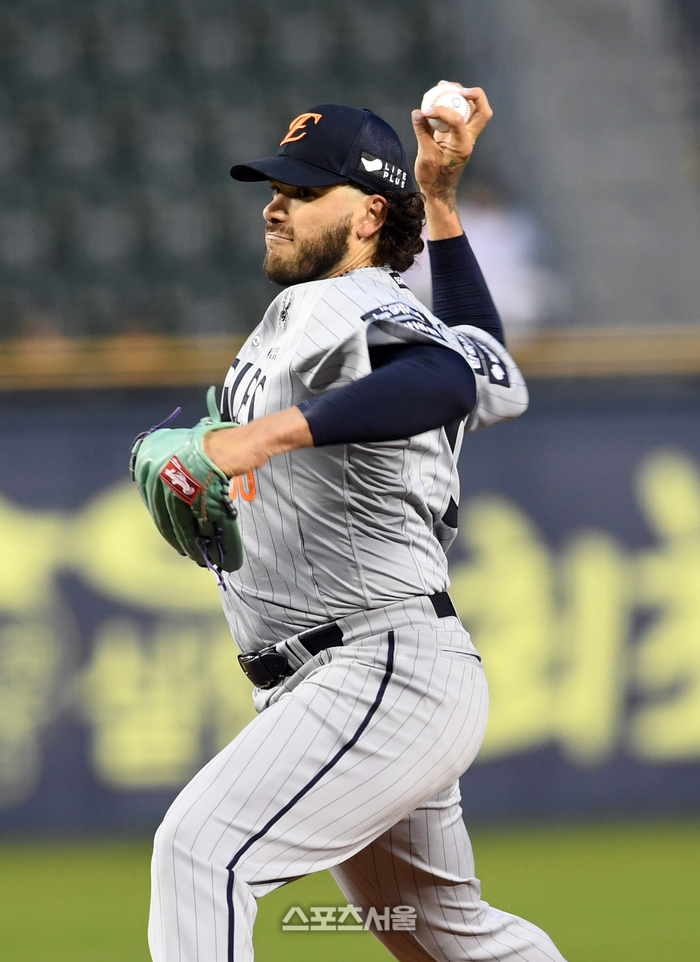 한화 폰세가 9일 잠실구장에서 열린 2025 KBO리그 두산과 경기에 선발 등판해 힘차게 공을 던지고 있다. 2025. 4. 9.