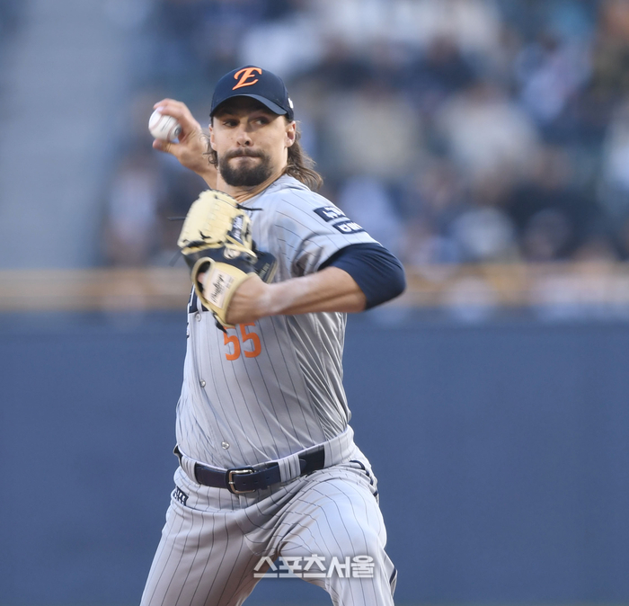한화 선발투수 와이스가 10일 잠실야구장에서 열린 2025 KBO리그 두산과 경기에서 역투하고 있다.