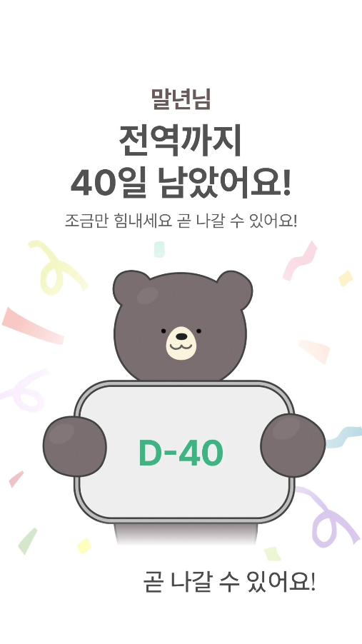 공개된 사진 속에는 남은 군 생활의 디데이가 표시되어 있는 화면이 담겨있다. 해당 사진에는 “말년님, 전역까지 40일 남았어요! 조금만 힘내세요 곧 나갈 수 있어요!”라는 문구가 적혀있어 RM의 전역일이 얼마 남지 않았음을 짐작게 했다.