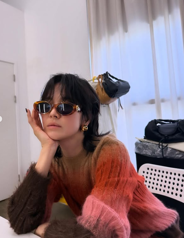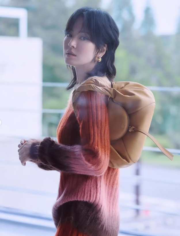 특히, 짙은 네이비 컬러의 롱 드레스에 블랙 백을 매치한 모습에서는 도회적인 세련미와 자신감 넘치는 아우라가 돋보였다. 자연스럽게 흐르는 울프컷 헤어와 절제된 포즈, 그리고 당당한 눈빛이 어우러져 송혜교만의 독보적인 스타일을 완성했다.