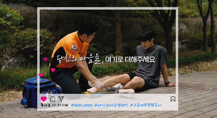 또한 평소 각종 기부와 나눔 활동을 꾸준히 이어오며 선한 영향력을 전하고 있는 가수 ‘션’ 도 「여기(Here), 히어로(Hero) 캠페인」에 동참해 국민적 관심과 참여를 이끌 것으로 기대된다. 그는 “국민의 안전을 위해 헌신하는 119구급대원이 존중받고 응원받는 사회가 되길 바란다”며 소감을 밝혔다.