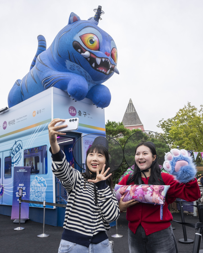 에버랜드에 마련된 테마존에서는 ‘헌트릭스’, ‘사자 보이즈’, K-분식 등 ‘케데헌’의 캐릭터와 세계관을 포토존, 미션게임, OST 등 다채로운 콘텐츠로 경험할 수 있어 최초 콜라보 예고 때부터 고객들의 많은 기대를 받은 바 있다.