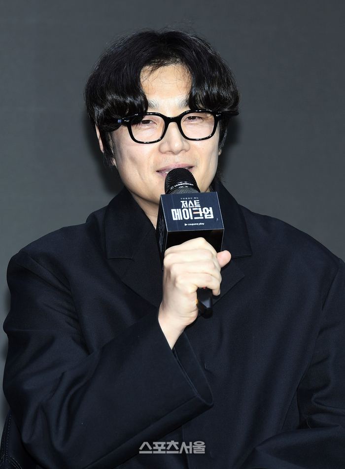 메이크업 아티스트 이진수가 1일 서울 광진구 풀만 앰버서더 이스트폴 호텔에서 진행된 쿠팡플레이 ‘저스트 메이크업’ 제작발표회에서 사회자의 질문에 답을 하고 있다.