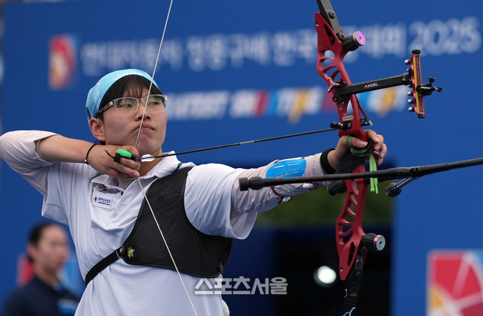 이정한(배재대학교)이 2일 광주광역시 5·18 민주광장에서 열린 ‘현대자동차 정몽구배 한국양궁대회 2025’ 리커브 남자 통합 개인 8강전에서 슈팅을 하고 있다. 2025. 10. 2. 대한양궁협회 제공.