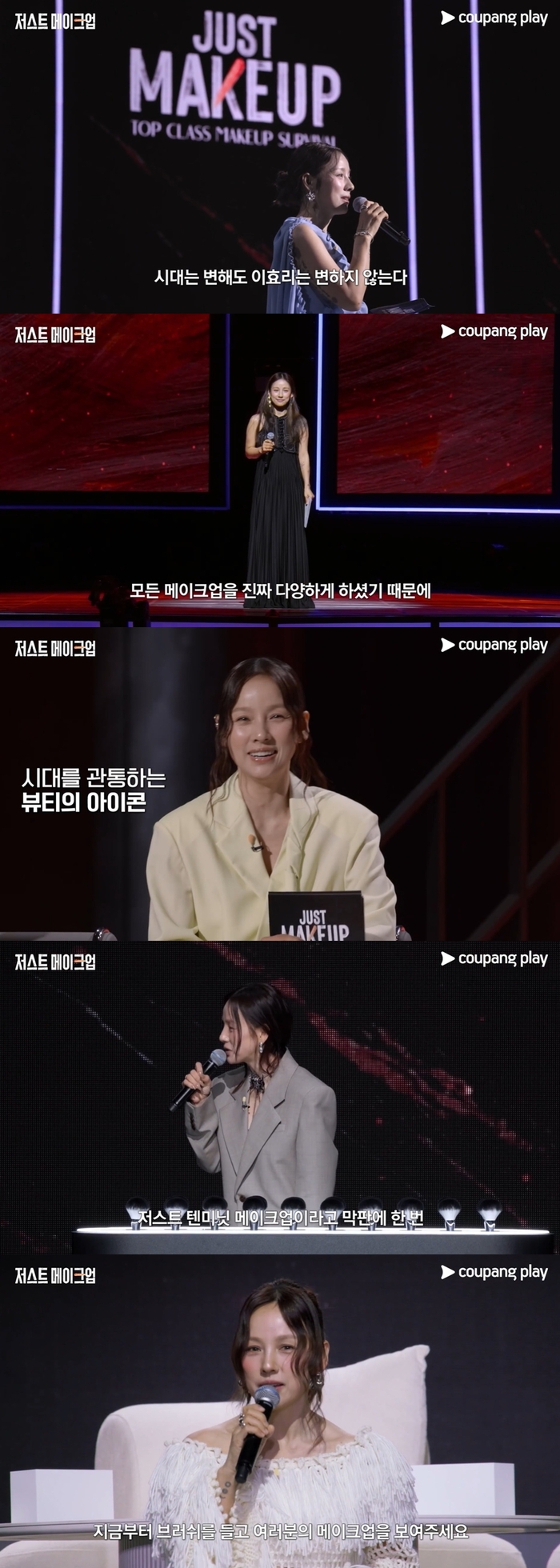 이효리는 지난 3일 1~3회가 공개된 쿠팡플레이 예능 ‘저스트 메이크업’의 MC로서 뷰티와 패션을 아우르는 아이콘다운 존재감을 입증했다.
