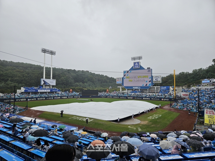 [스포츠서울 | 대구=김동영 기자] 경기 시작 10분 앞두고 갑자기 빗줄기가 굵어졌다. 한국야구위원회(KBO) 관계자들이 급하게 그라운드 상태를 살폈다. 경기 지연 개시 결정이다.