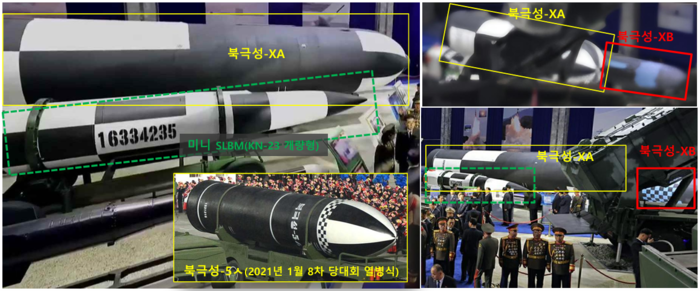유 의원은 “신형 전략 SLBM은 2종류가 공개되었는데 ‘북극성-5’ 보다 크고 탄두부가 뭉툭한 것으로 보이는 SLBM은 기존 보다 탄두부의 탑재량이 늘어난 것이 특징이다”라며, “직경이 작은 신형 SLBM도 공개했는데 직경이 작은 수직발사관 탑재형으로 보인다”라고 밝혔다.