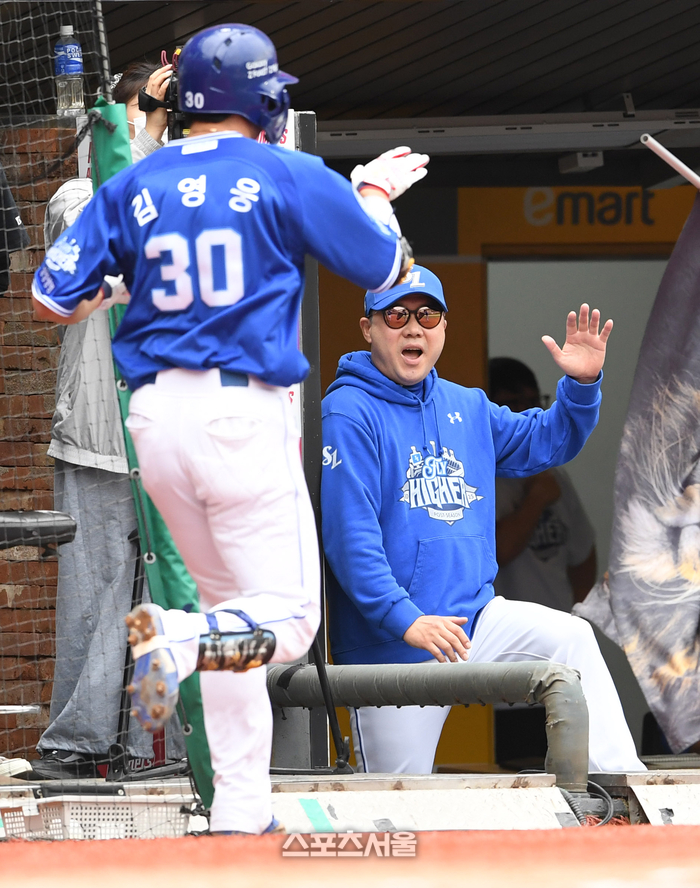 일발 장타가 있는 김영웅에게 초구 커브를 던졌는데, 시원한 헛스윙. 타이밍에 변화를 줄 법했지만 SSG 배터리는 같은 구종을 또 선택하는 실책을 범했다. 궤적과 타이밍을 잊지 않은 김영웅은 한 가운데로 몰린 시속 128㎞짜리 커브를 우측으로 115m나 보냈다.