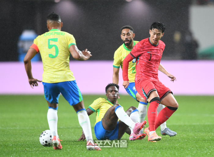 홍 감독은 후반 18분 손흥민, 이재성, 김민재 ‘베테랑 3총사’를 벤치로 불러들였다. 오현규, 김진규, 박진섭을 투입했다. 손흥민은 이날 A매치 137번째 출전으로 대선배 차범근, 홍명보(이상 136경기)를 넘어 한국 남자 선수 최다 출전 신기록을 작성했다. 이재성은 100경기를 채우며 센추리클럽에 가입했다. 그러나 브라질에 고전하면서 크게 웃지 못했다.