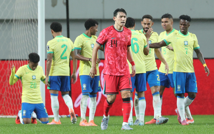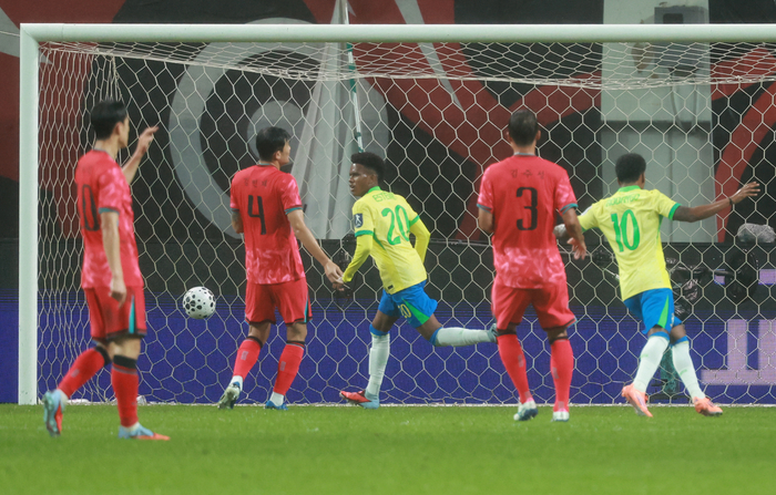 한국의 페널티박스 진입에 어려움을 겪은 브라질은 전반 4분 호드리구, 10분 비니시우스가 한 차례씩 중거리 슛을 시도했지만 골문을 벗어났다.