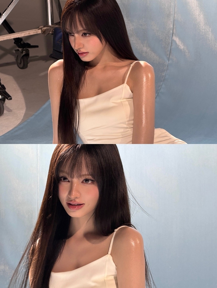 공개된 사진 속 리즈는 매끈하게 윤광이 흐르는 듯한 흰색 슬립 드레스를 입고 다양한 포즈를 취하고 있다. 그녀의 긴 생머리와 시크하면서도 나른한 눈빛은 완벽한 청순하면서도 고혹미 넘치는 비주얼을 연출했다.