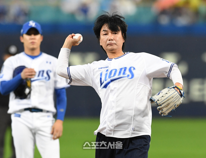 배우 이철민이 13일 대구 삼성라이온즈파크에서 열린 2025 KBO리그 SSG와 삼성의 준플레이오프 3차전에 앞서 시구를 하고 있다. 2025. 10. 13.