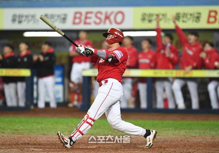 SSG 고명준이 13일 대구 삼성라이온즈파크에서 열린 2025 KBO리그 삼성과의 준플레이오프 3차전 9회초 무사 1루 삼성 배찬승을 상대로 추격 2점 홈런을 치고 있다. 2025. 10. 13.