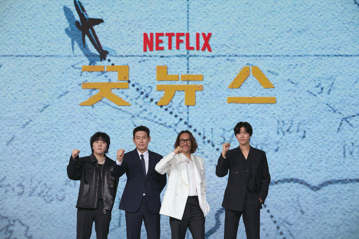 ‘굿뉴스’는 1970년 3월 발생한 일본항공 351편 공중 납치 사건, 일명 ‘요도호 사건’을 재구성한 작품이다. 14일 서울 JW메리어트 동대문 스퀘어에서 진행된 제작 보고회에서 변성현 감독은 “실화를 바탕으로 영감을 받아 쓴 각본”이라며 ”실화를 완전히 따르지는 않았다. 그 안에서 제가 하고 싶은 이야기, 현 세대에게 통용될 이야기를 녹여냈다“고 밝혔다.