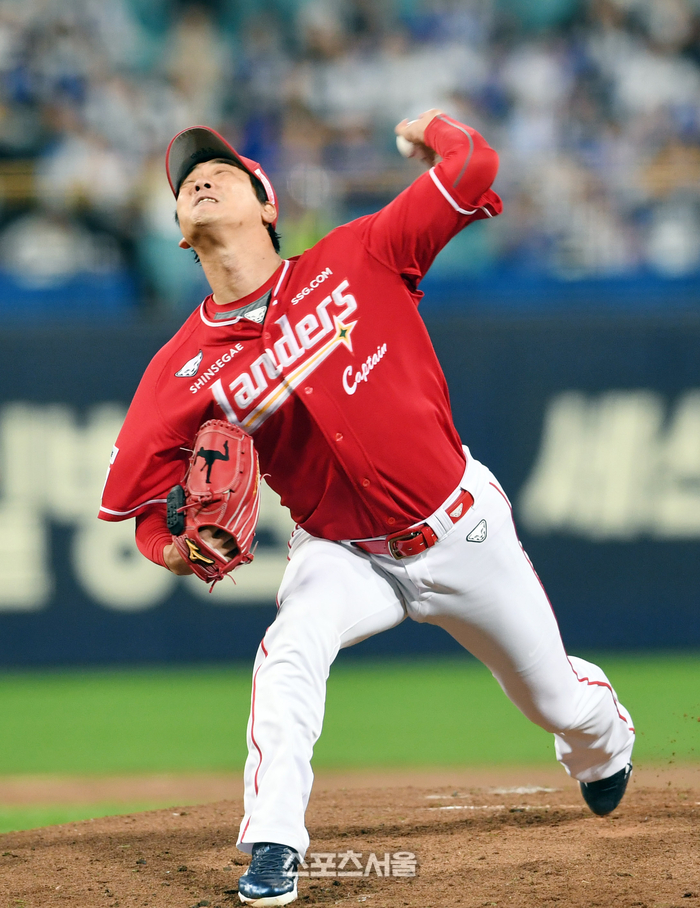 SSG 김광현이 14일 대구 삼성라이온즈파크에서 열린 2025 KBO리그 삼성과의 준플레이오프 4차전에 선발 등판해 힘차게 공을 던지고 있다. 2025. 10. 14.
