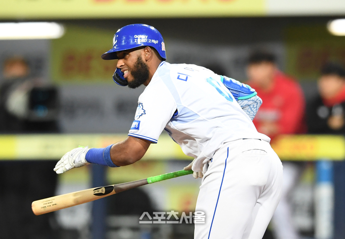 삼성 디아즈가 14일 대구 삼성라이온즈파크에서 열린 2025 KBO리그 SSG와의 준플레이오프 4차전 6회말 무사 1-2루 상황에서 SSG 투수 노경은을 상댈 1타점 적시타를 치고 있다. 2025. 10. 14.