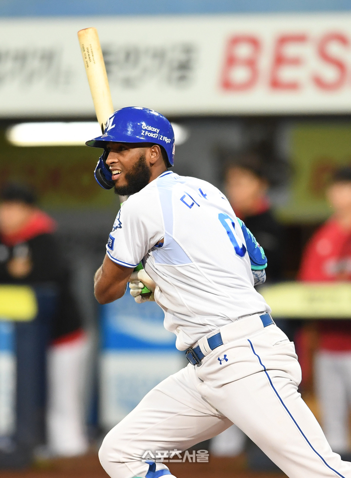 삼성 디아즈가 14일 대구 삼성라이온즈파크에서 열린 2025 KBO리그 SSG와의 준플레이오프 4차전 6회말 무사 1-2루 상황에서 SSG 투수 노경은을 상댈 1타점 적시타를 치고 있다. 2025. 10. 14.