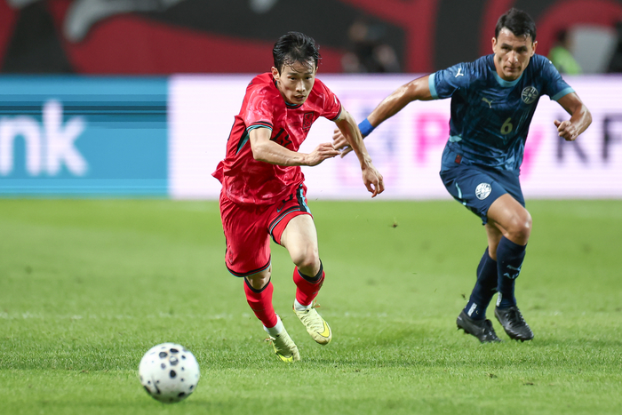 김문환은 이날 설영우 대신 오른쪽 윙백으로 출전했다. 수비시에는 오른쪽 측면을 맡고, 공격시에는 측면보다 중앙으로 들어와 중원 숫자를 늘려줬다. 파라과이가 공을 소유할 때 적극적으로 압박에 가담하며 수비적으로도 상당한 기여도를 보였다.