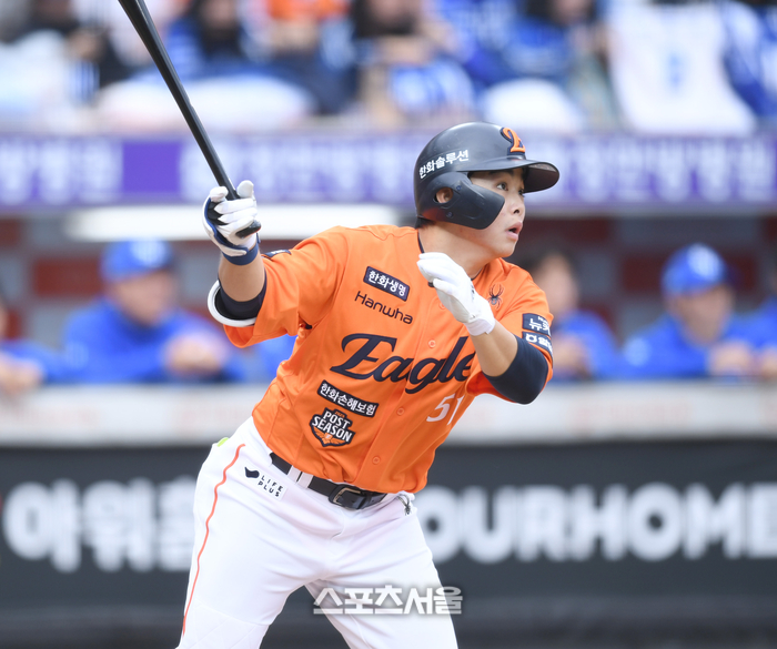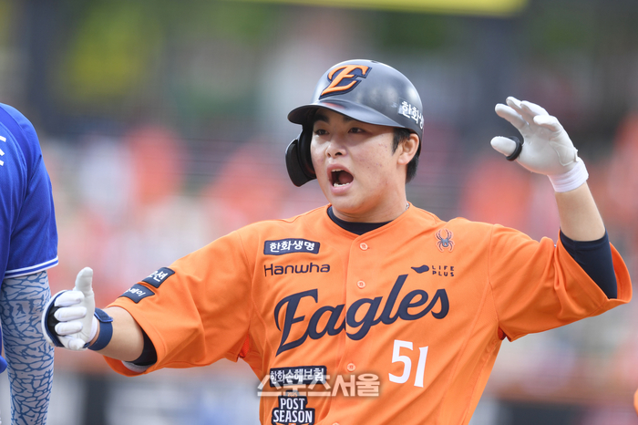 정규시즌 141경기, 타율 0.320·12홈런·80타점·OPS(출루율+장타율) 0.823. 팀 내 유일 3할 타자. ‘한화의 미래’라는 수식은 이미 늦었다. 그는 지금, ‘현재’다.