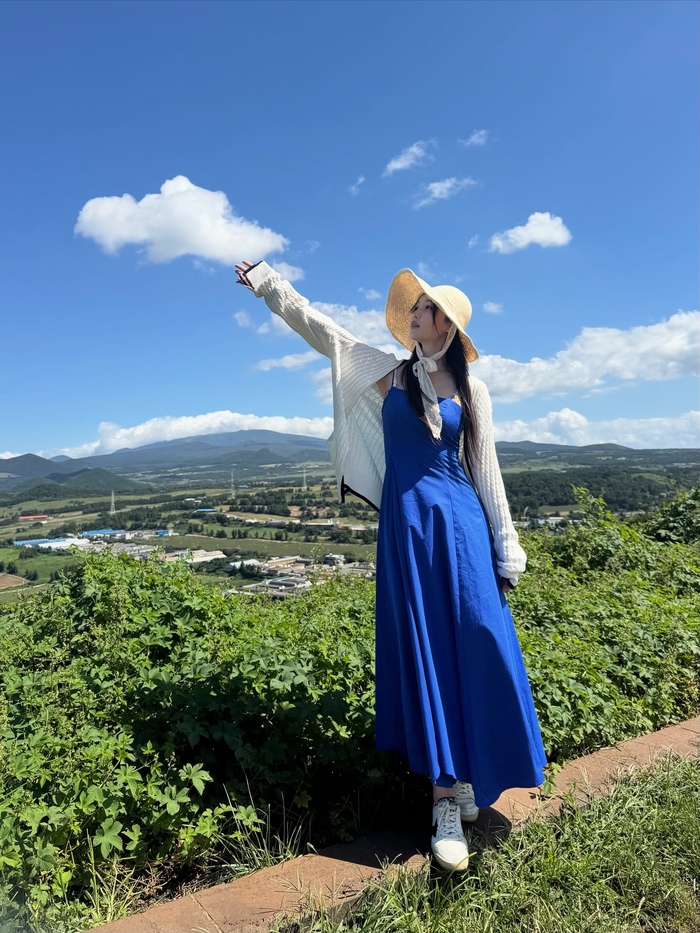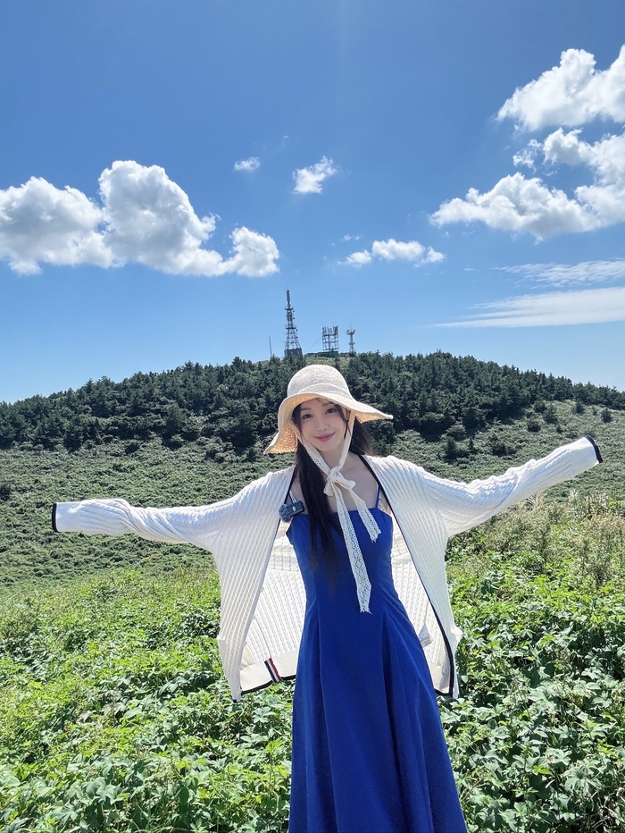 남규리는 시원한 파란색 롱 원피스에 하얀색 카디건과 라피아 햇을 매치해 청순하면서도 사랑스러운 여행 룩을 완성했다. 넓게 펼쳐진 푸른 들판 위에서 팔을 활짝 벌리거나 햇살을 만끽하는 모습은 마치 동화 속 주인공 같다. 특히 보정 없이도 변함없는 ‘인형 미모’를 자랑해 팬들의 시선을 사로잡았다.