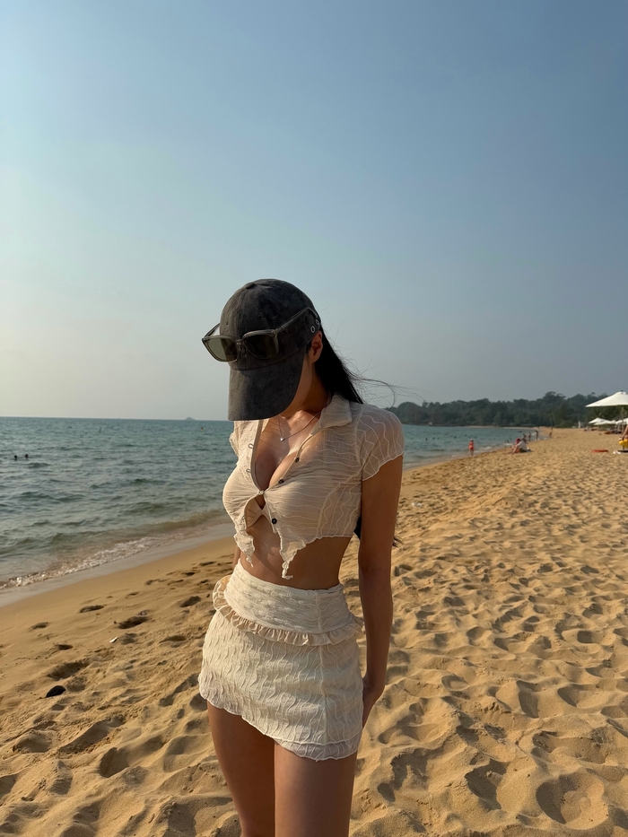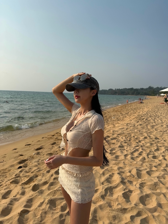 공개된 사진 속 차영현은 화이트 비키니에 크림색의 시스루 크롭 셔츠를 매치 해 청순하면서도 섹시한 비치룩을 선보이고 있다. 특히 석양을 배경으로 한 사진에선 차영현의 잘록한 허리와 군살 없는 탄탄한 복근, 완벽한 S라인 몸매가 더욱 도드라져 치어리더 특유의 건강미가 돋보였다.