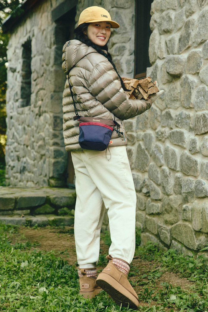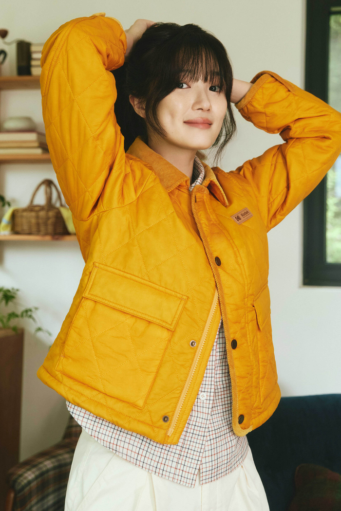화보 속 김혜윤이 착용한 제품은 ‘컬러라마 경량 구스 다운 자켓’이다. 프리미엄 구스 다운 충전재를 사용해 보온성과 코닥 특유의 빈티지한 색감을 살려 디자인 완성도를 높였다. 그레이, 옐로우, 블루, 블랙 등 코닥만의 컬러감을 녹인 경량 다운으로 구성되었고, 일체형 후드와 전면 지퍼 포켓, 코닥 로고 아트워크로 실용성과 섬세함을 더했다. 가볍기 때문에 장시간 착용해도 편안하고, 입체적인 실루엣이 체형을 보완해 데일리 패딩으로 제격이다.