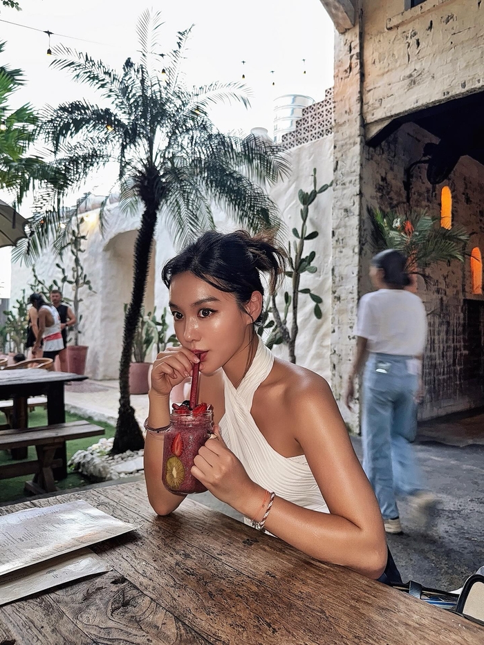 공개된 사진 속 김희정은 이국적인 휴양지에서 여유로운 일상을 즐기고 있다. 선베드에 앉아 코코넛 음료를 마시거나, 스파 공간에서 편안한 표정으로 휴식을 취하는 모습이 눈길을 끈다.