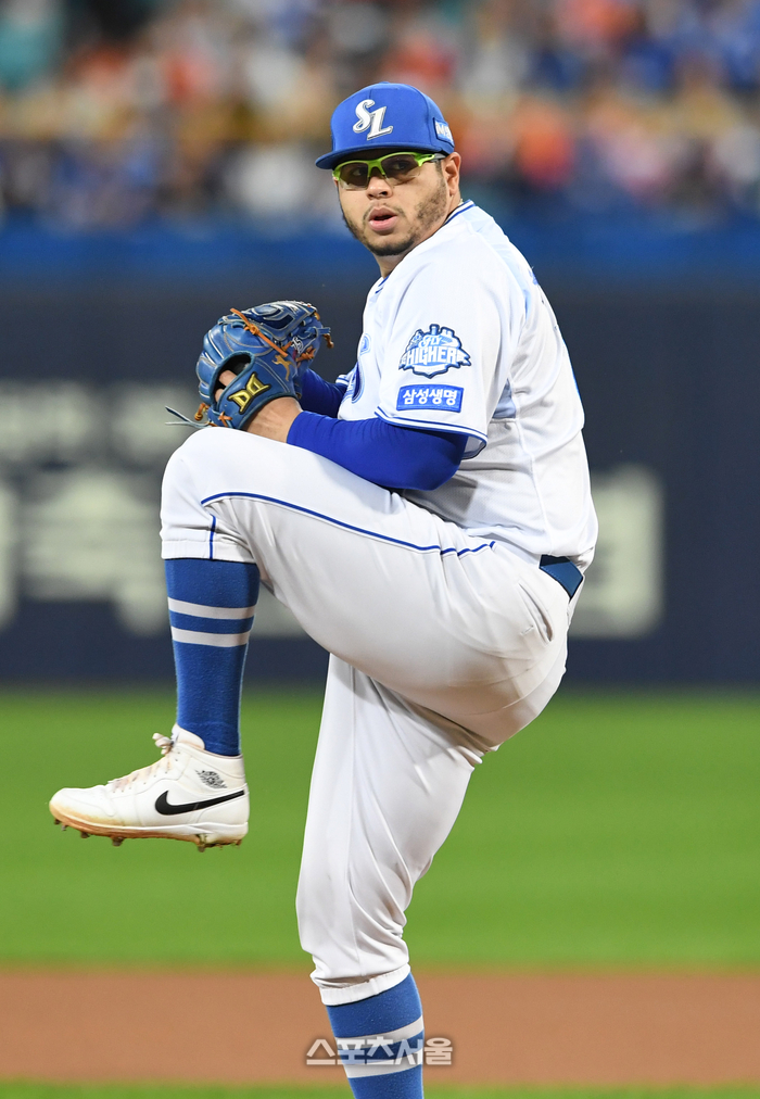 삼성 후라도가 21일 대구 삼성라이온즈파크에서 열린 2025 KBO리그 한화와의 플레이오프 3차전에 선발 등판해 힘차게 공을 던지고 있다. 2025. 10. 21.