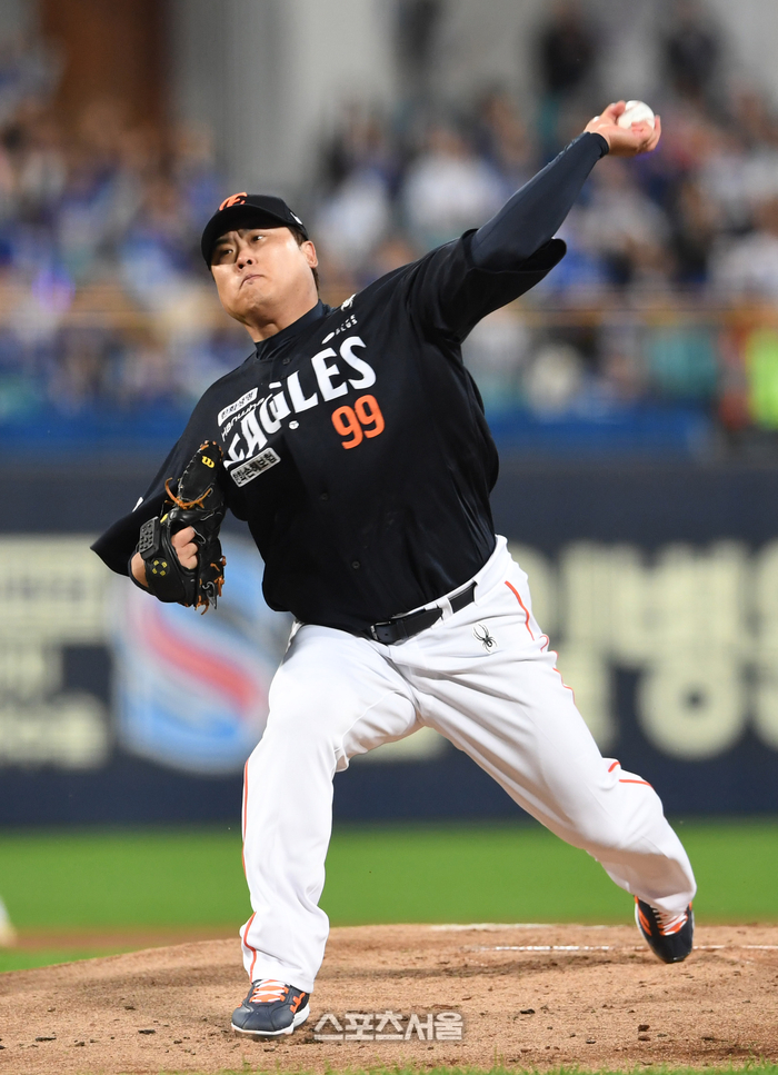 한화 류현진이 21일 대구 삼성라이온즈파크에서 열린 2025 KBO리그 삼성과의 플레이오프 3차전에 선발 등판해 힘차게 공을 던지고 있다. 2025. 10. 21.