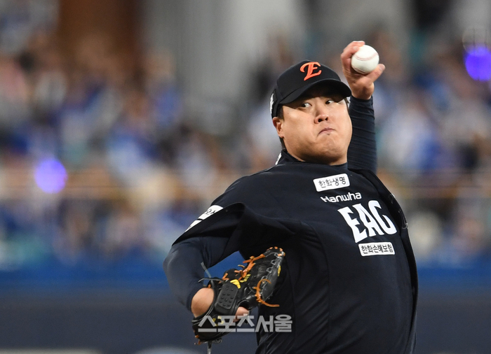 한화 류현진이 21일 대구 삼성라이온즈파크에서 열린 2025 KBO리그 삼성과의 플레이오프 3차전에 선발 등판해 힘차게 공을 던지고 있다. 2025. 10. 21.