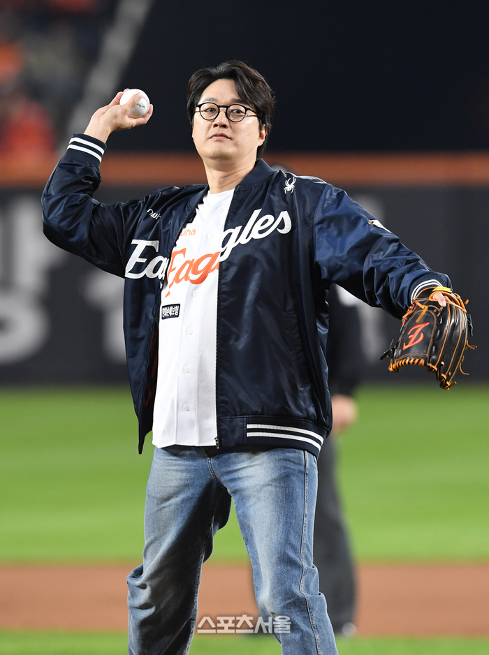 페퍼톤스의 이장원이 대전 한화생명볼파크에서 열린 2025 KBO리그 삼성과 한화의 플레이오프 5차전에 앞서 시구를 하고 있다. 2025 10. 24.