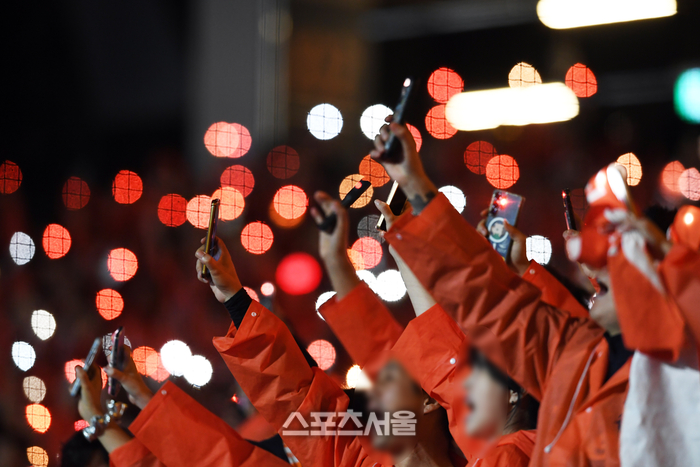 대전 한화생명볼파크에서 열린 2025 KBO리그 삼성과 한화의 플레이오프 5차전에서 한화 팬들이 열띤 응원을 펼치고 있다. 2025 10. 24.