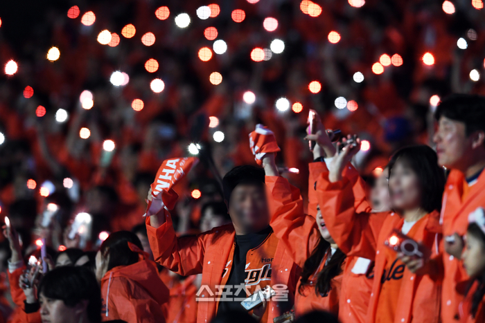 대전 한화생명볼파크에서 열린 2025 KBO리그 삼성과 한화의 플레이오프 5차전에서 한화 팬들이 열띤 응원을 펼치고 있다. 2025 10. 24.