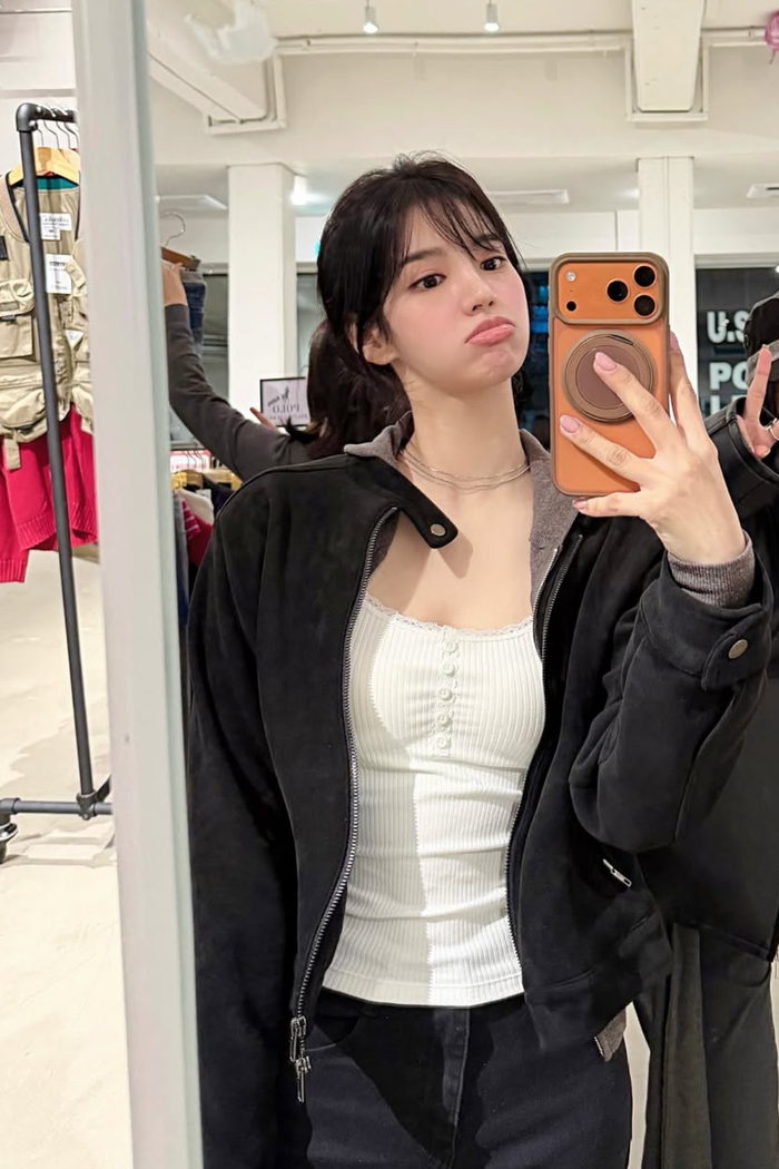 슬림한 화이트 컬러의 이너에 갈색 후드 카디건과 재킷을 코디한 스타일링도 눈에 띄었다. 그야말로 ‘가을 여자’다운 코디와 청순한 그의 미모가 어우러지며 훈훈한 분위기를 더했다.
