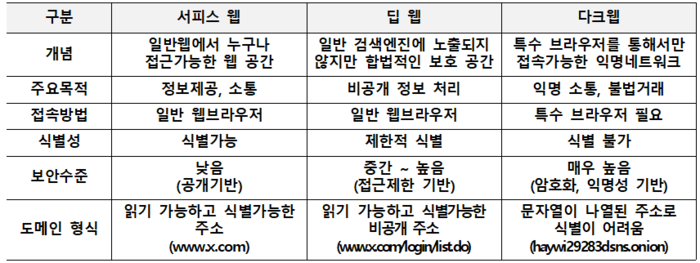 더욱 심각한 것은 다크웹 관련 예산이 ‘0원’인 것으로 드러났다. 웹 사이트의 종류는 크게 서피스 웹, 딥 웹, 다크웹으로 구분된다. 최근 개인정보 불법유통이 다크웹을 중심으로 확산하고 있으나, 개보위는 여전히 일반적으로 사용하는 서피스 웹과 딥 웹 위주의 대응에 머물고 있다.