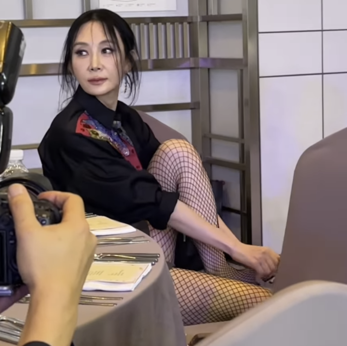 특히 블랙 망사스타킹을 입고 드러난 빼어난 각선미가 눈길을 끌었다. 짙은 아이라인으로 시크함과 고혹적인 매력까지 더했다. 57세라는 나이가 믿기지 않은 분위기와 비주얼로 시선을 압도했다.