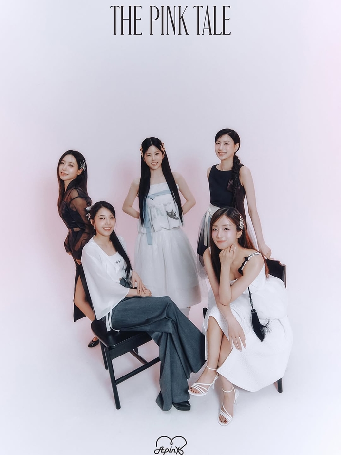 에이핑크 멤버들과 함께한 단체 사진도 눈길을 끈다. 멤버들은 각기 다른 스타일의 드레스와 헤어 장식으로 ‘THE PINK TALE’ 콘셉트를 완성했다. 오랜 시간 함께한 팀의 따뜻한 케미스트리가 고스란히 느껴진다.